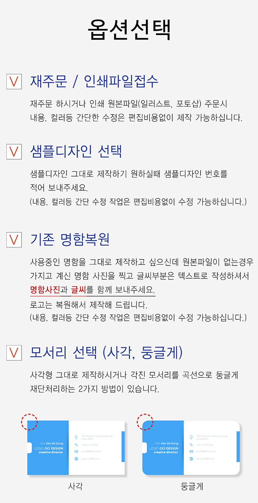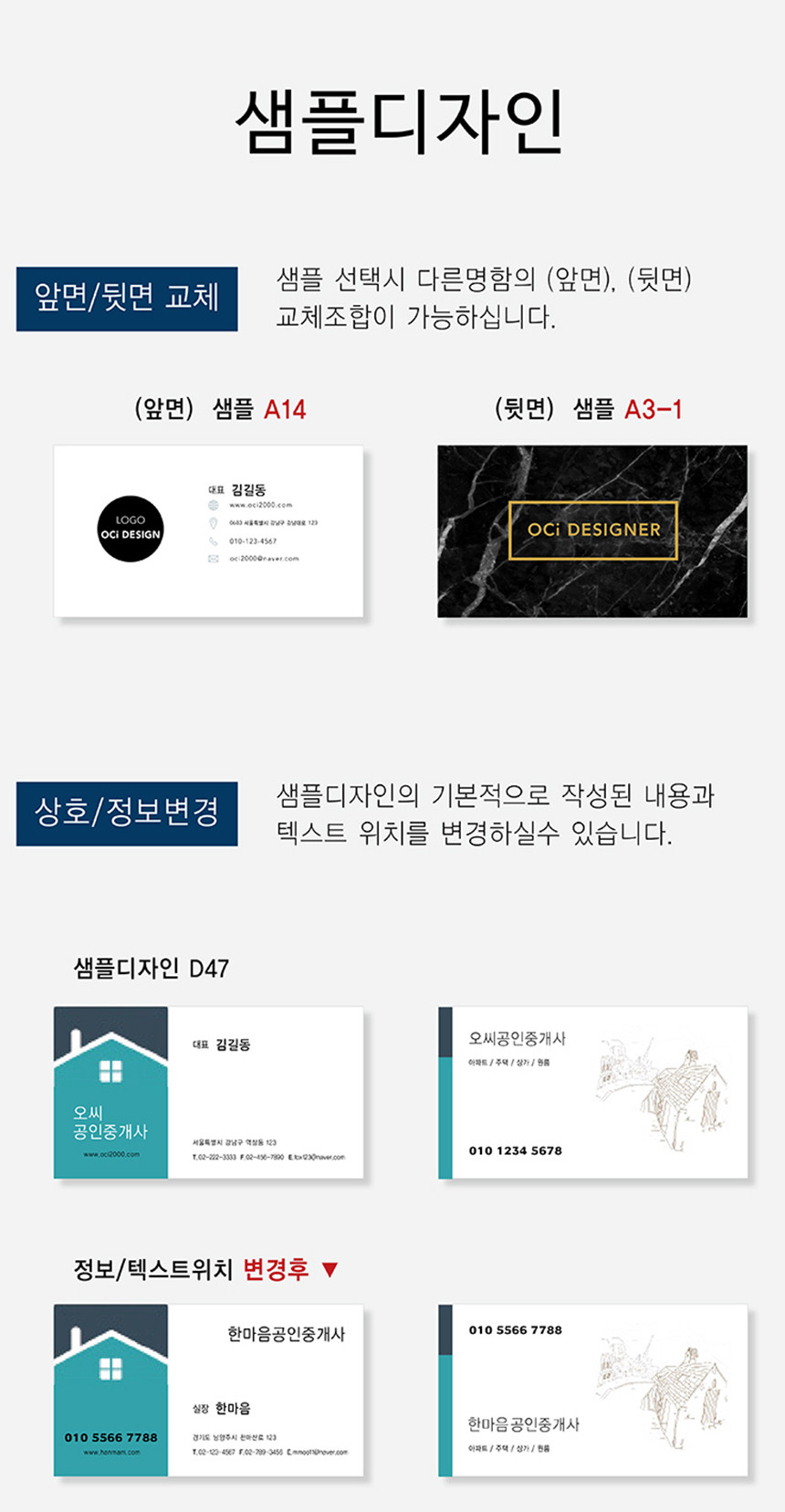 고객님의 명함내용에 맞게 서체, 크기,